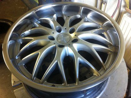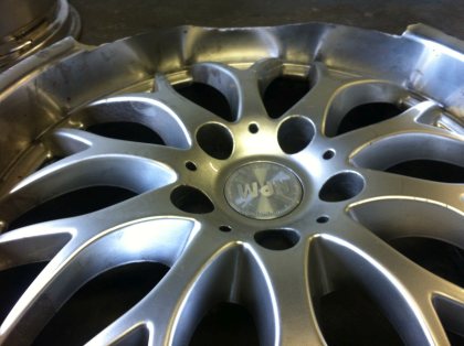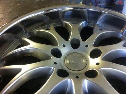 Re-do after another garage, previous bad workmanship. Odd cracks or missing chips. Cracks located on the face of the wheel. Heavily buckled and twisted alloys, rims 20-22 inch. |